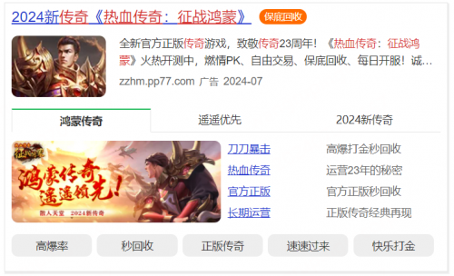 为实现更广泛的用户触达及忠实玩家的精准锁定,360智慧商业为《热血传奇-征战鸿蒙》制定了品牌词+品类词的投放策略。
