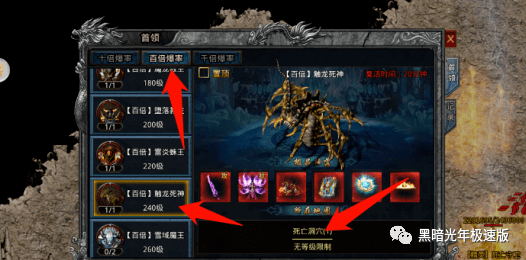 100-500米挂机建议选择死亡洞穴,携带4-6转套装,并确保可以长时间挂机而不被击杀。